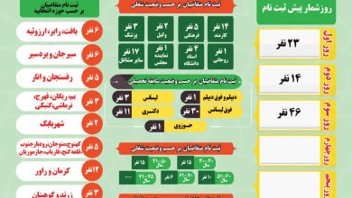 آمار کل ثبت نام در استان کرمان تا ساعت ۱۸ روز شنبه ۲۹ مهر ماه : ???? تعدادکل : 46…