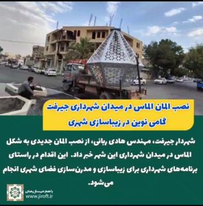نصب المان الماس در میدان شهرداری جیرفت؛ گامی نوین در زیباسازی شهری