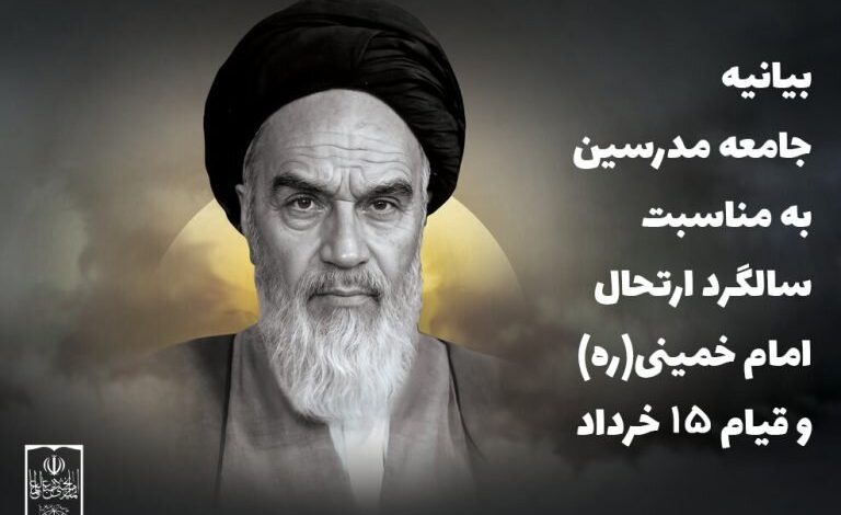 به گزارش پایگاه خبری جنوب زیبا به نقل از خبرگزاری حوزه، به مناسبت سی و ششمین سالگرد ملکوتی بنیانگذار انقلاب اسلامی ایران و شصت و دومین سالگرد قیام خونین پانزدهم خرداد، جامعه مدرسین بیانیهای به شرح ذیل صادر کرد: