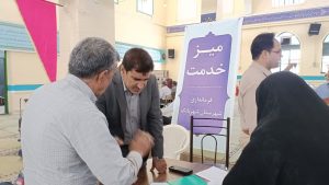 در این میزهای خدمت مسئولان به صورت مستقیم به سوالات و مطالبات شهروندان پاسخ دادند.