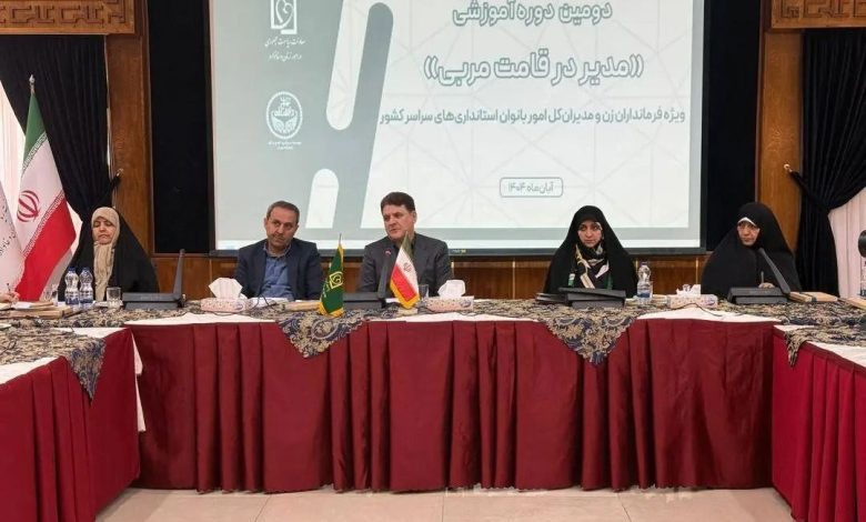 دومین دوره آموزشی «مدیر در قامت مربی» ویژه فرمانداران زن و مدیرانکل امور بانوان استانداریهای سراسر کشور با حضور ۱۱ بانوی فرماندار، ۲۶ مدیرکل امور بانوان و جمعی از بخشداران زن سراسر کشور آغاز شد و دو هفته ادامه خواهد داشت.