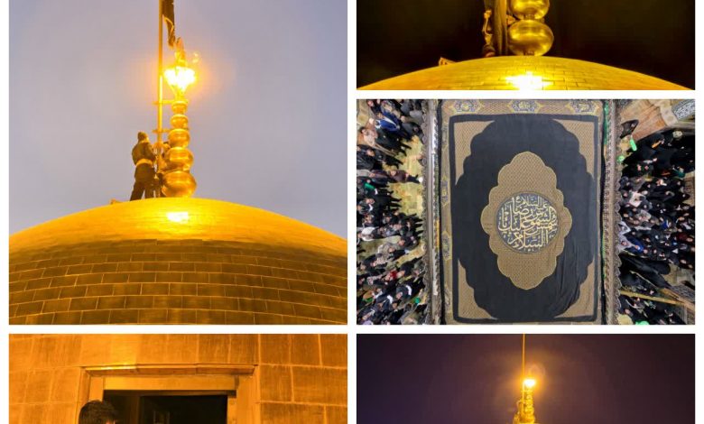 اهتزاز پرچم مشکی گنبد حرم مطهر رضوی