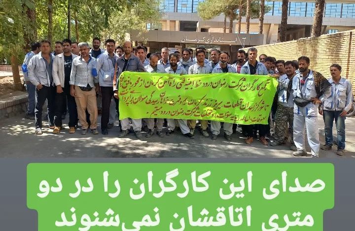 صداهایی که در جلو استانداری کرمان شنیده نمیشود! / جناب آقای استاندار و معاونین استاندار قدم رنجه فرموده و پایین بیایید و صدای این کارگران مظلوم بشنوید