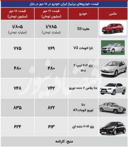 رصد بازار خودرو نشان دهنده آن است «پژو 206 دندهای » در بازار 480 میلیون تومان قیمت خورد. از سوی دیگر «هایما S8 پلاس» هم در بازار امروز یک میلیارد و 805 میلیون تومان قیمت خورد که با این شرایط نسبت به روز گذشته رشدی 20 میلیونی را تجربه کرد. از سوی دیگر ارزیابی بازار نشان میدهد «تارا اتوماتV2 » هم در بازار امروز 775 میلیون تومان قیمت و رشدی 6 میلیونی در بازار داشت.