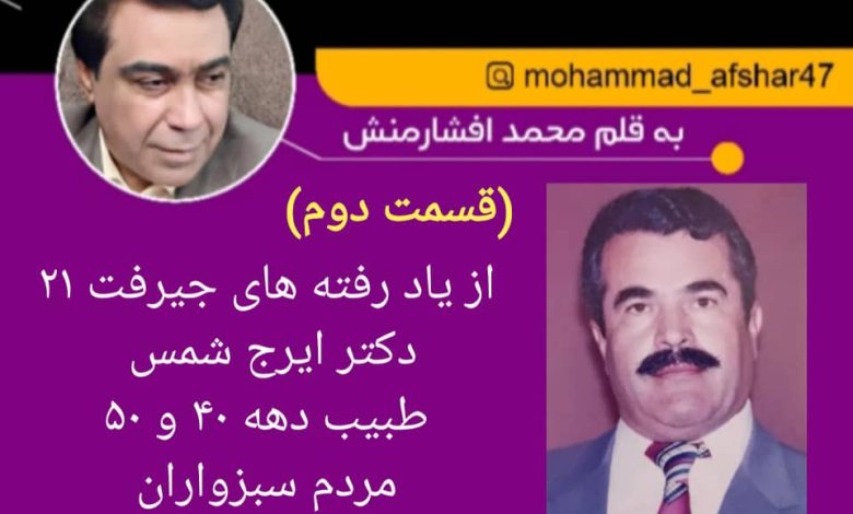دکتر ایرج شمس، طبیب حاذق و فراموش نشدنی دهه ۴۰ و ۵۰ مردم سبزواران