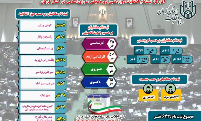 643 داوطلب انتخابات مجلس در استان کرمان ثبتنام نهایی را انجام دادند